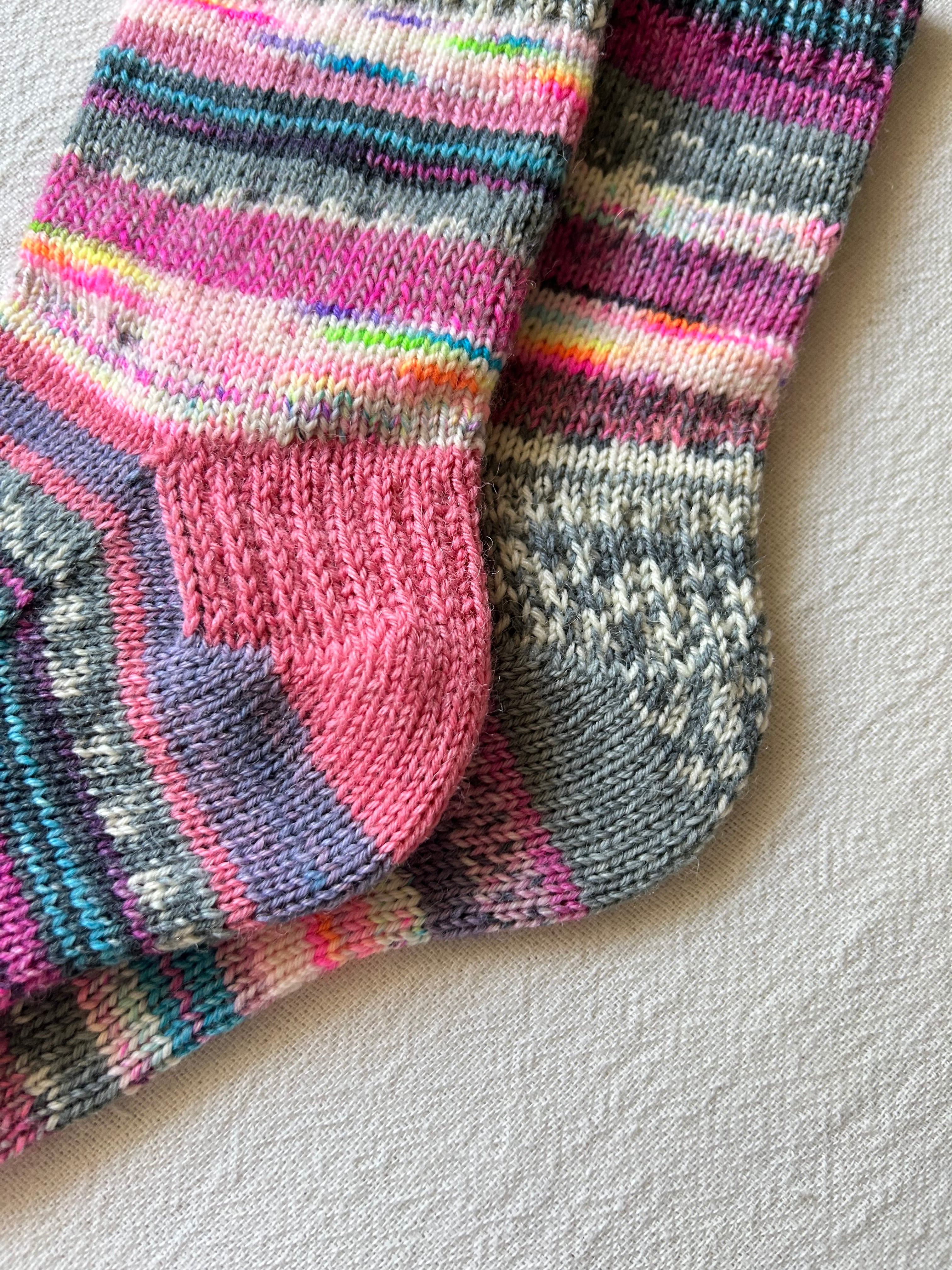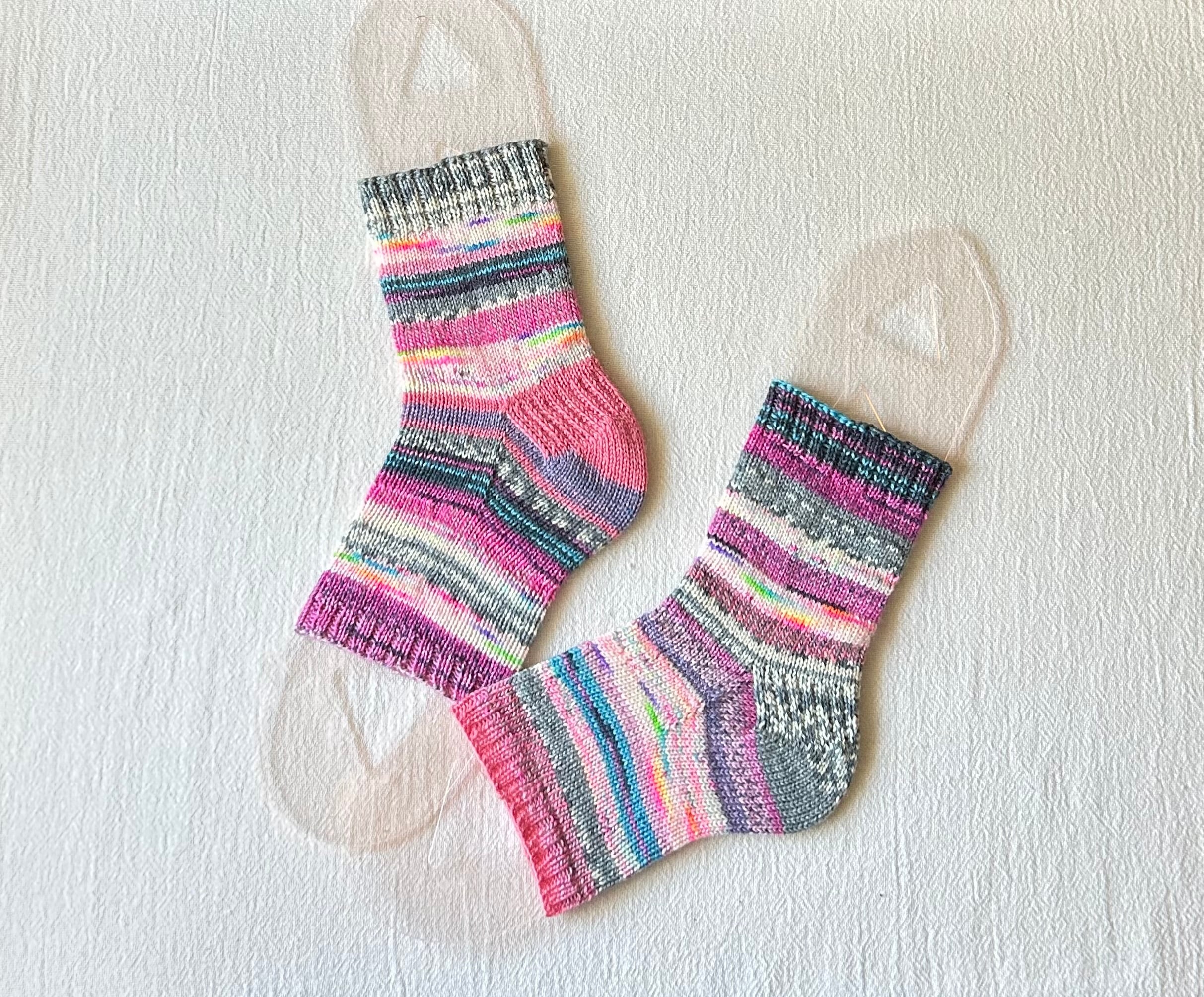 この靴下は、ハッピースクラッピーソックスと言って、『残り糸もハッピーに可愛い靴下に』という思いのこもった、世界に一つだけの靴下です。