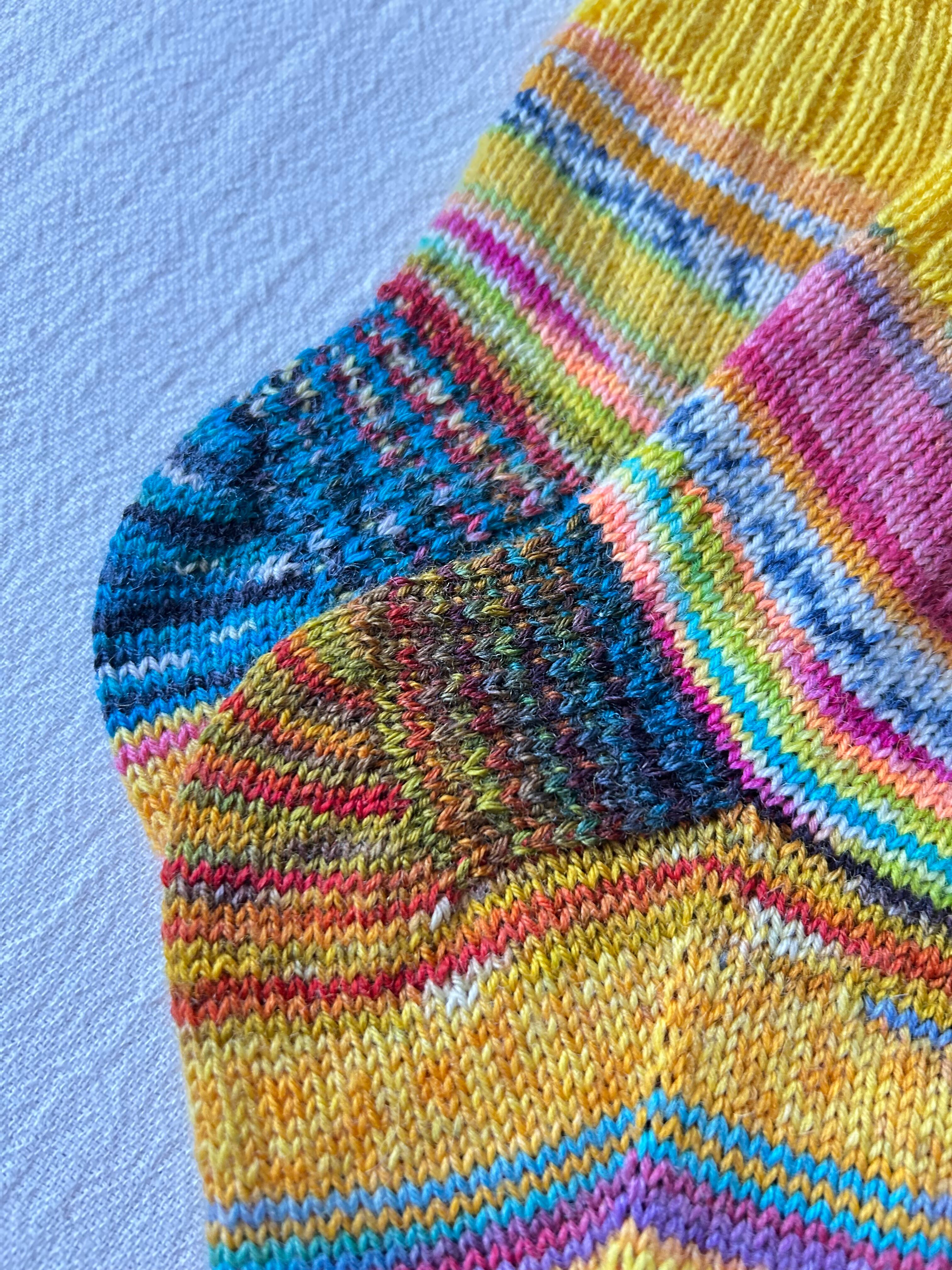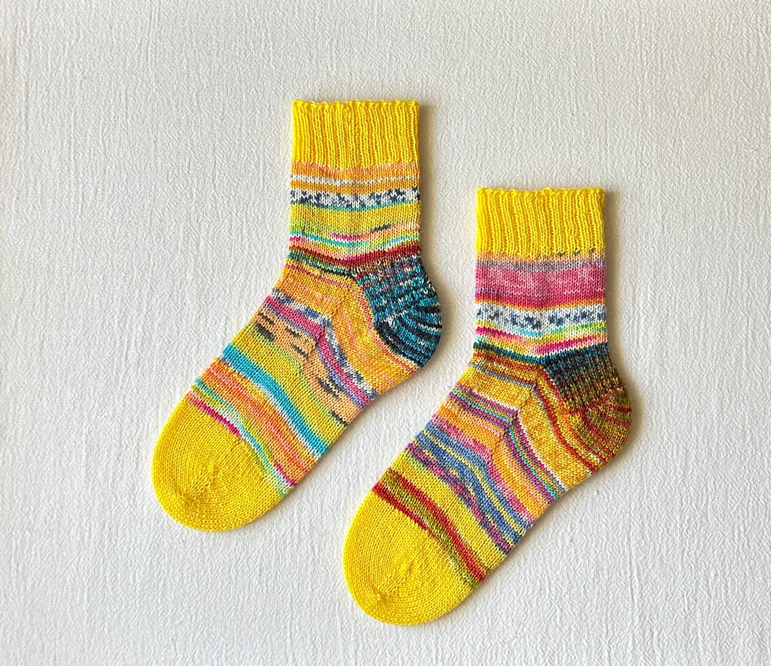 手編みのカラフルな靴下です。