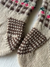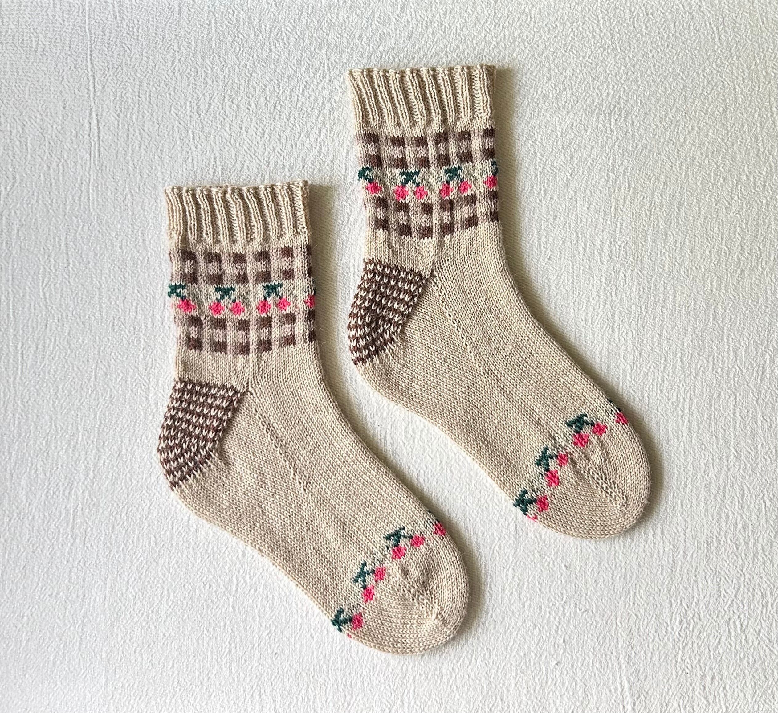 カラフルで個性的な手編み靴下、ぜんぶ“knit nikkoの世界”から生まれた作品たちです♩