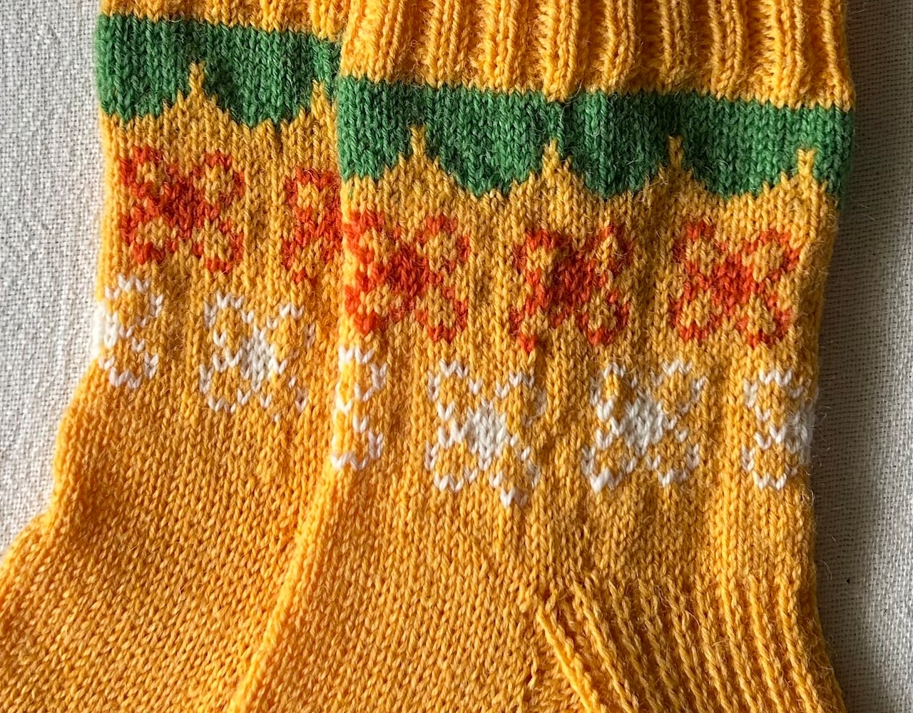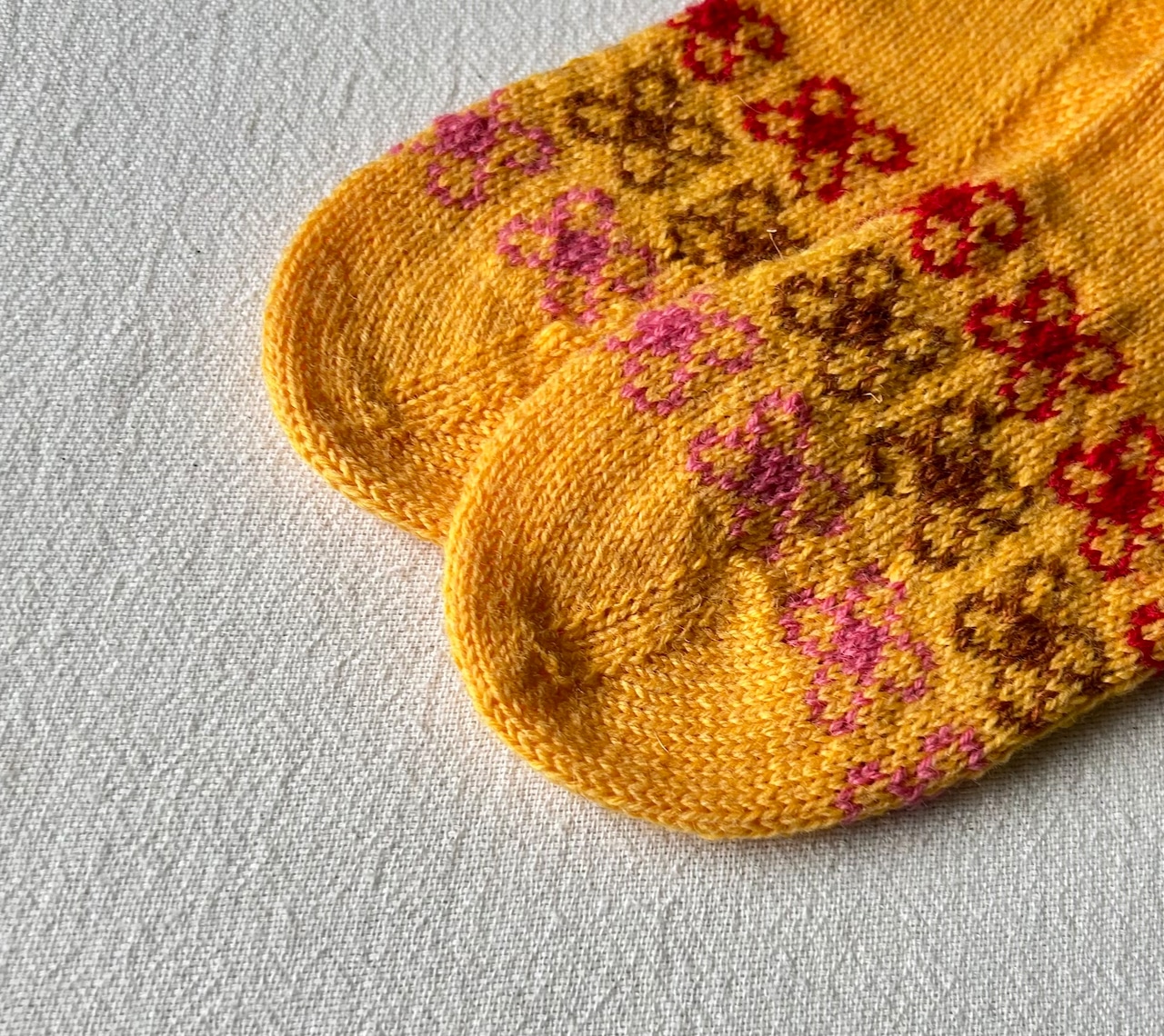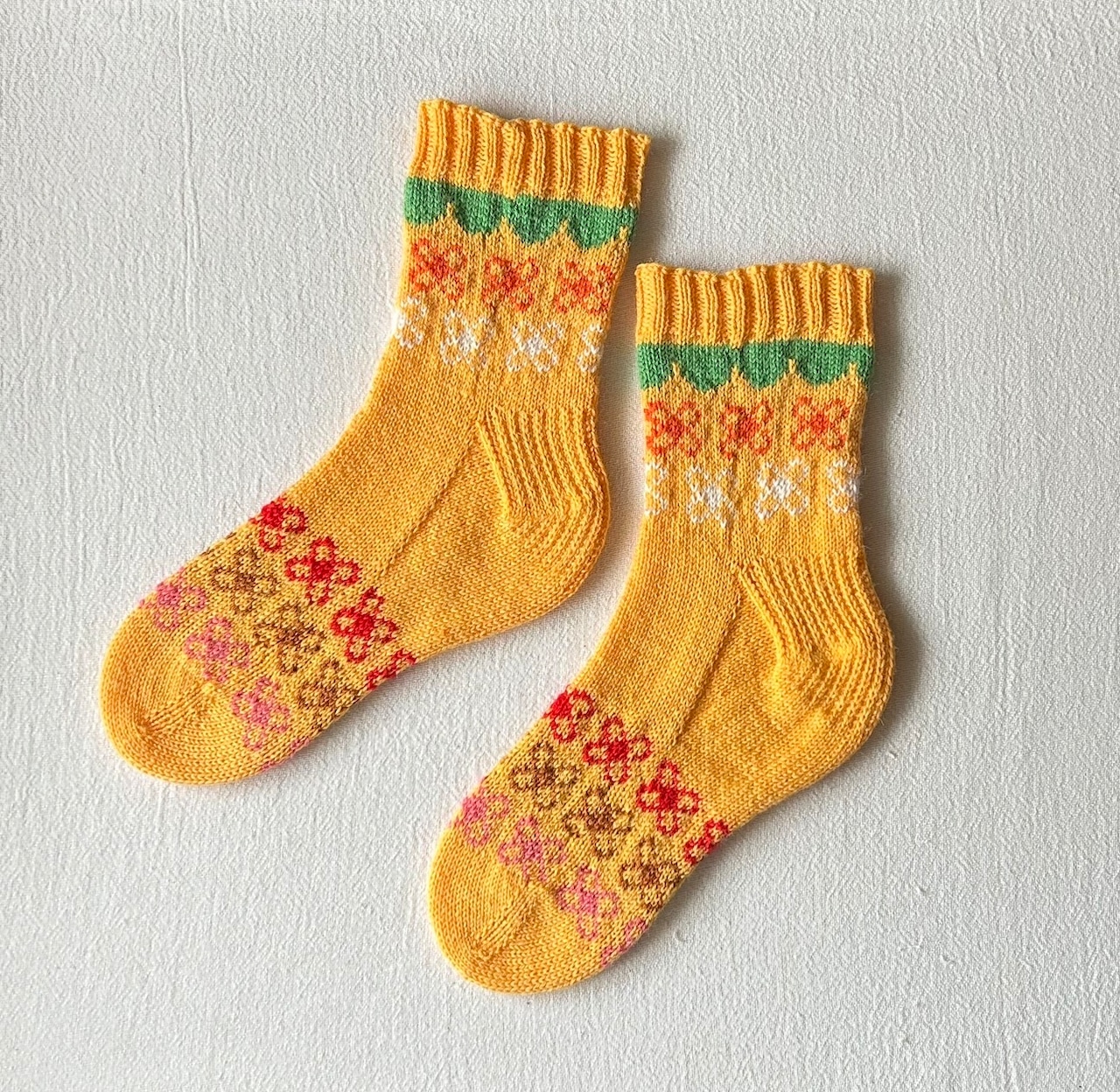 カラフルで個性的な手編み靴下、ぜんぶ“knit nikkoの世界”から生まれた作品たちです♩