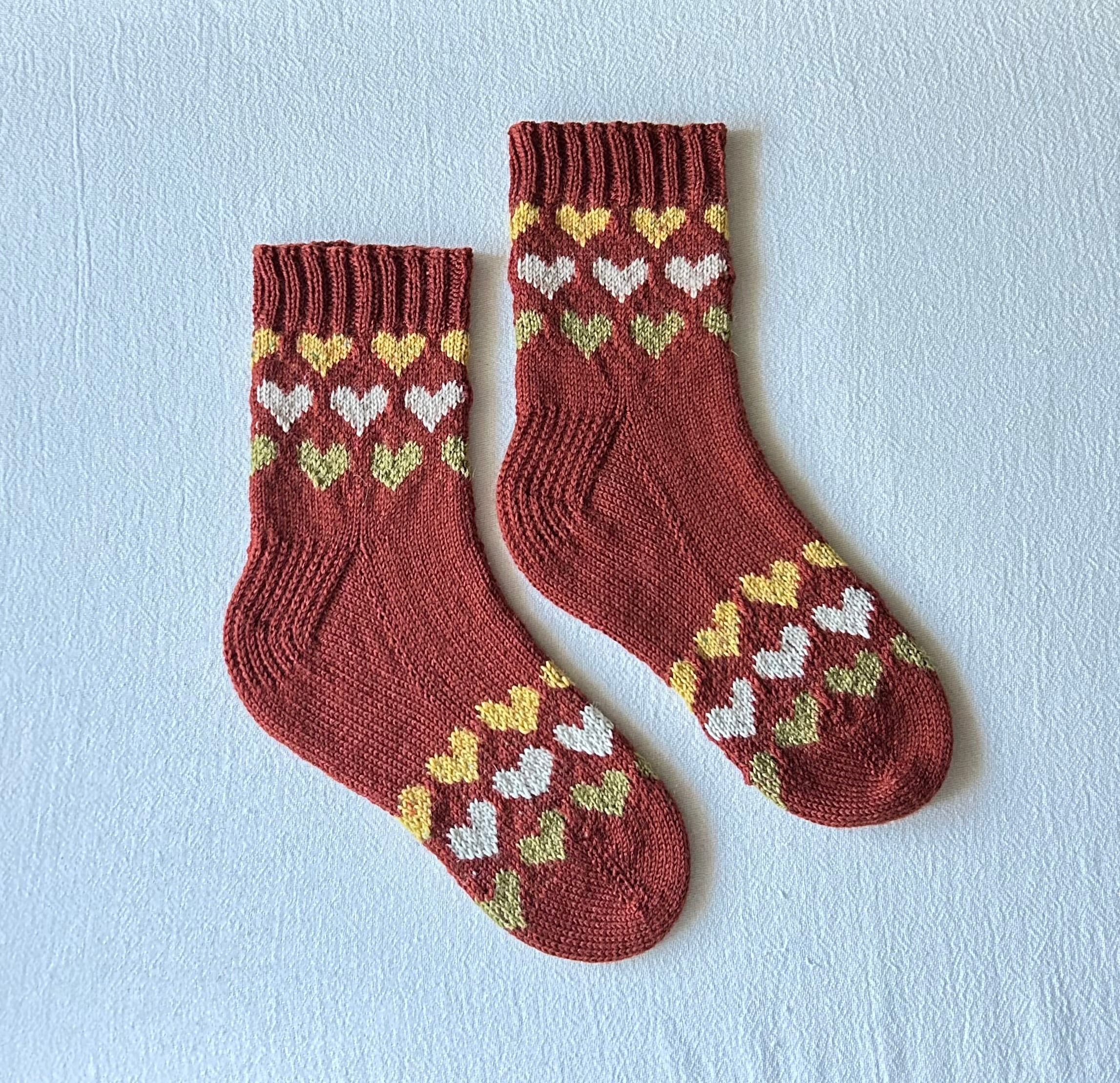 カラフルで個性的な手編み靴下、ぜんぶ“knit nikkoの世界”から生まれた作品たちです♩