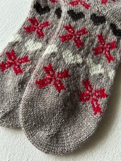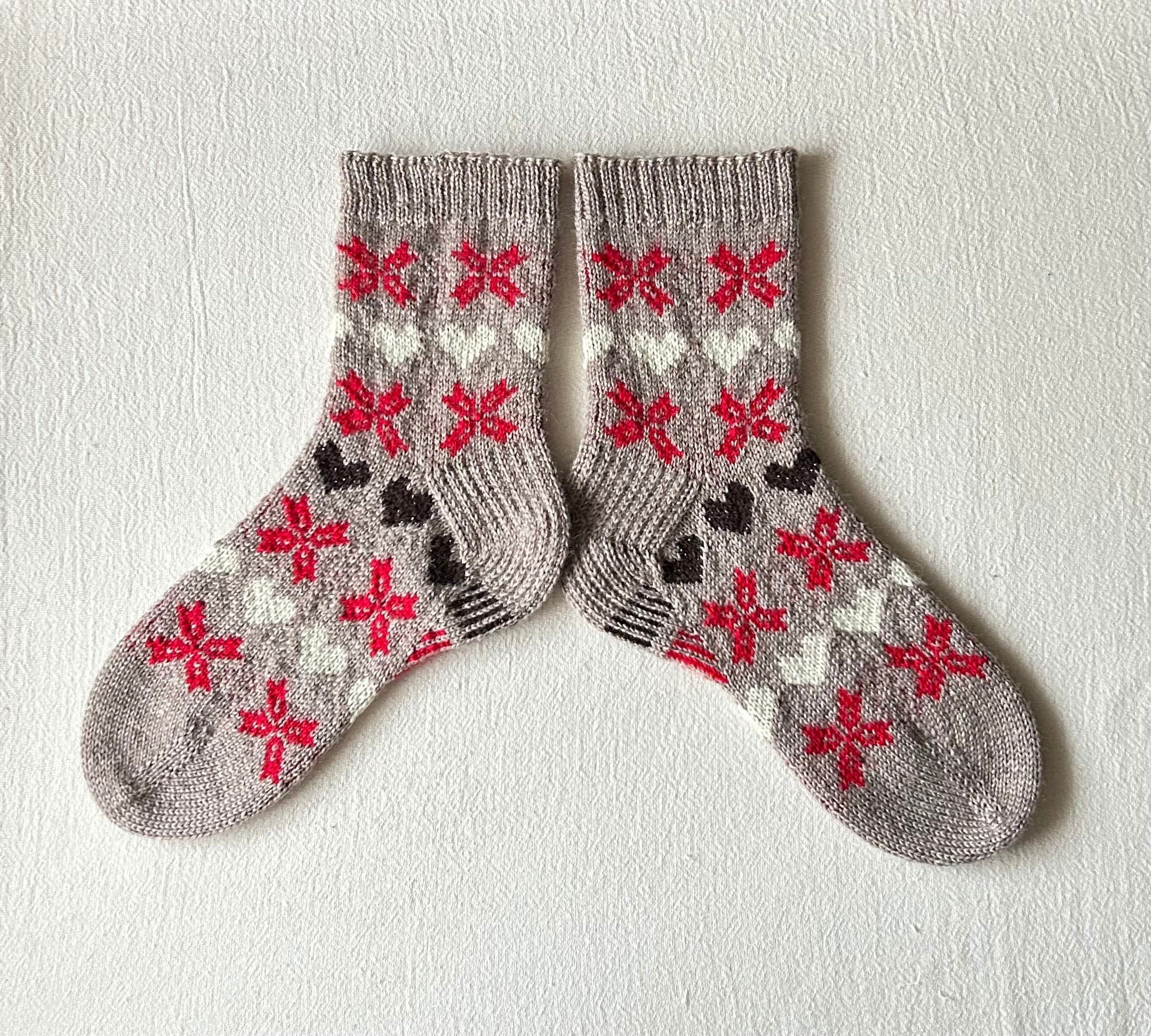 カラフルで個性的な手編み靴下、ぜんぶ“knit nikkoの世界”から生まれた作品たちです♩