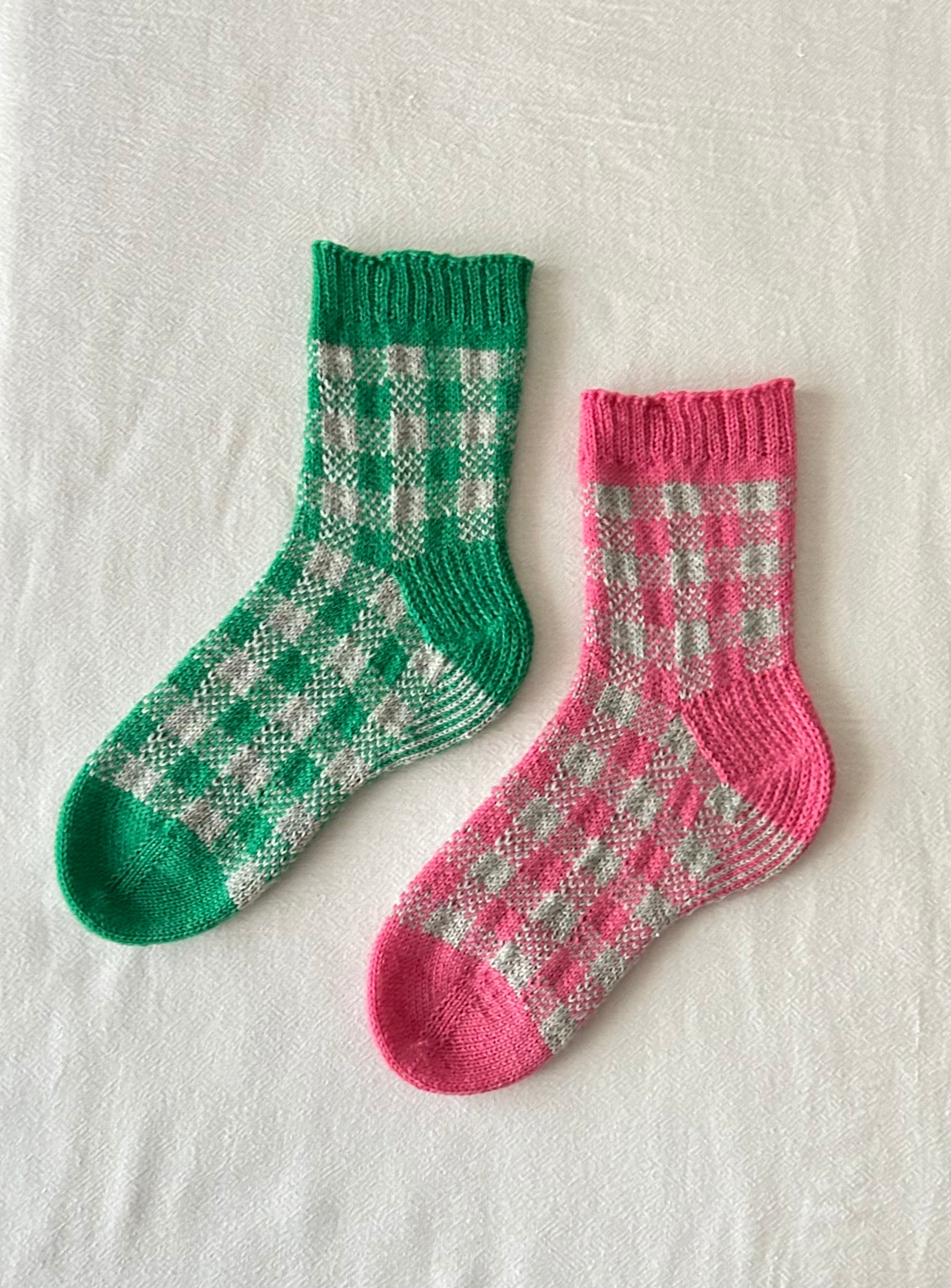 カラフルで個性的な手編み靴下、ぜんぶ“knit nikkoの世界”から生まれた作品たちです♩