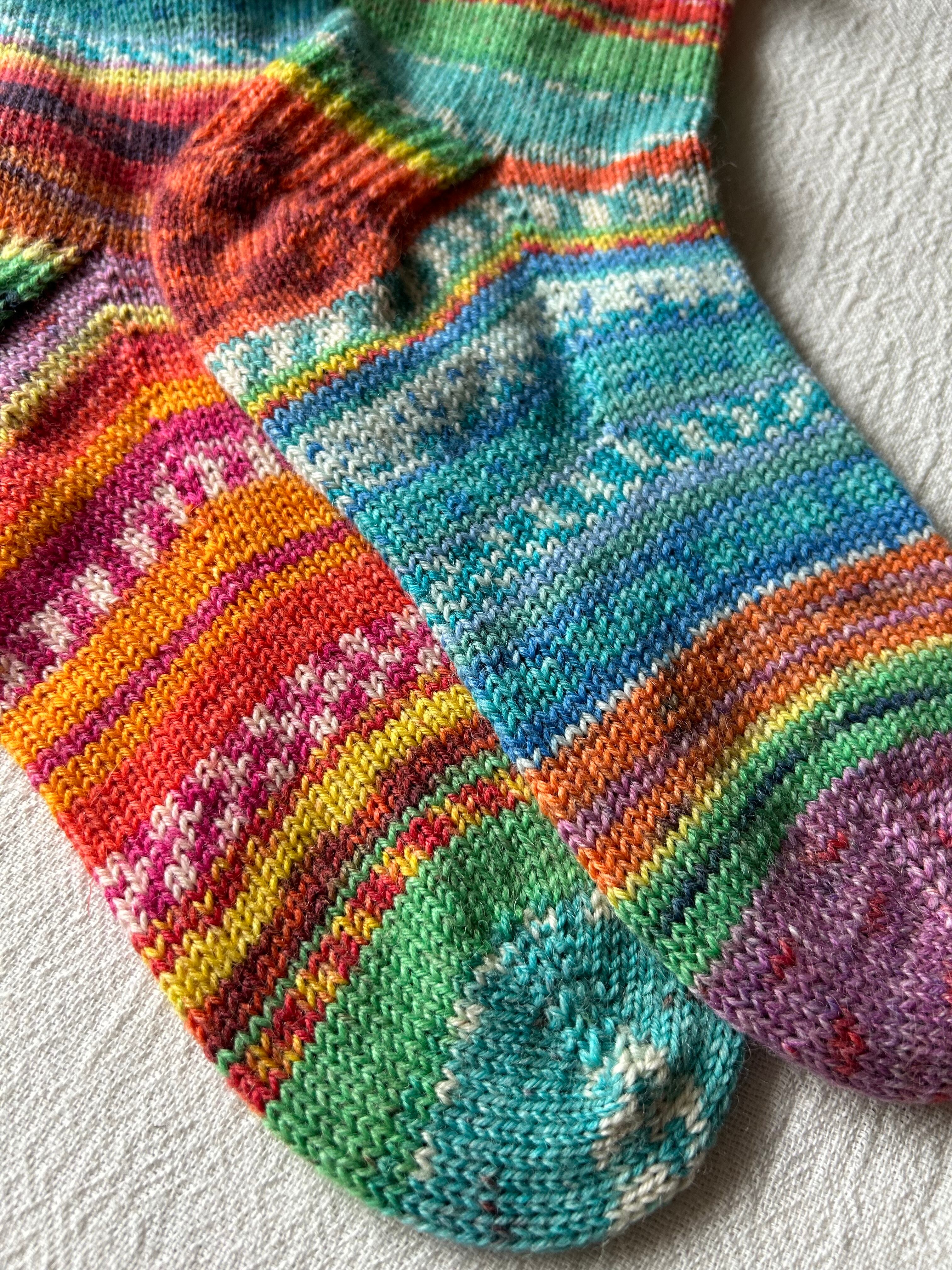 この靴下は、ハッピースクラッピーソックスと言って、『残り糸もハッピーに可愛い靴下に』という思いのこもった、世界に一つだけの靴下です。