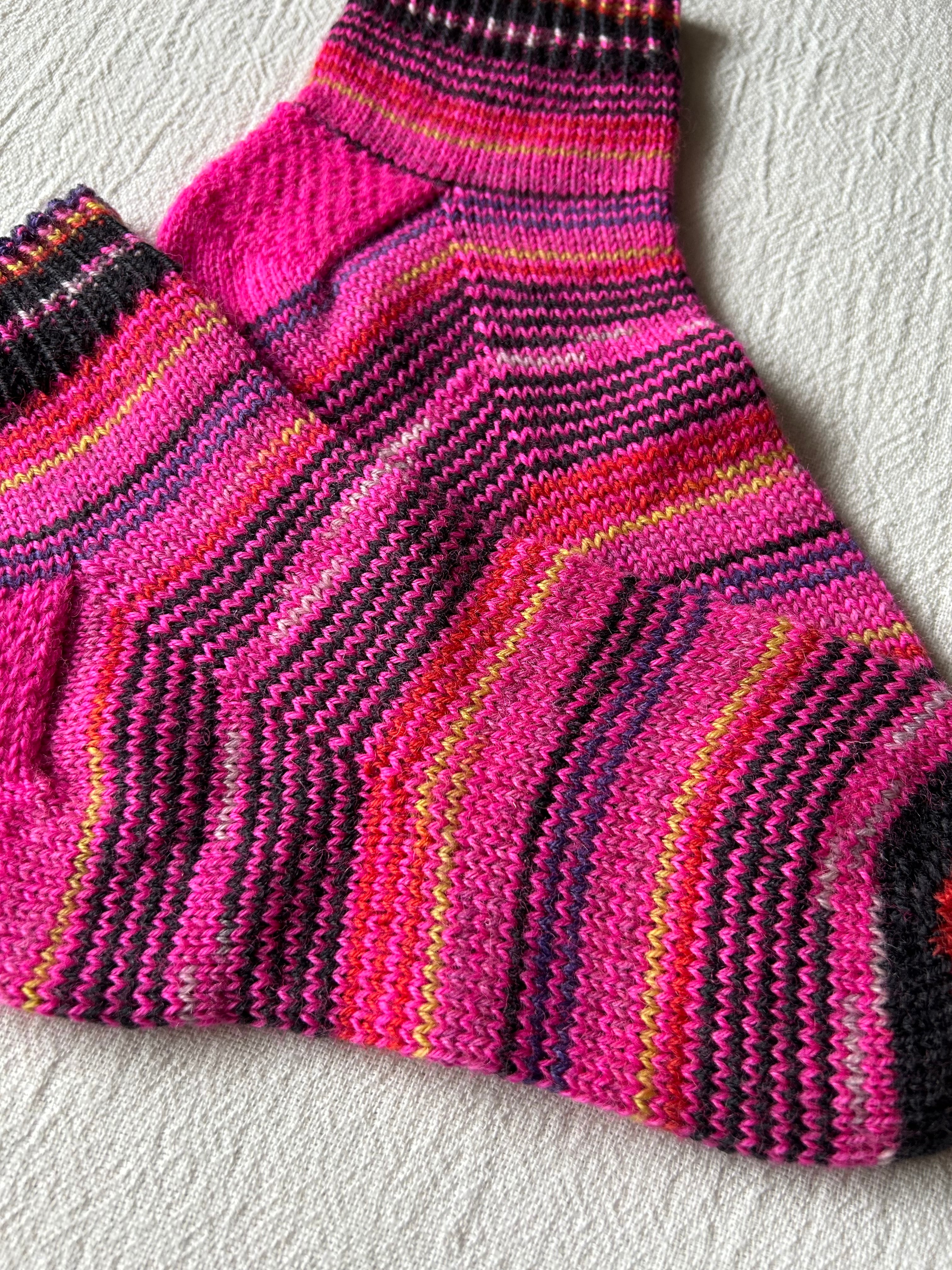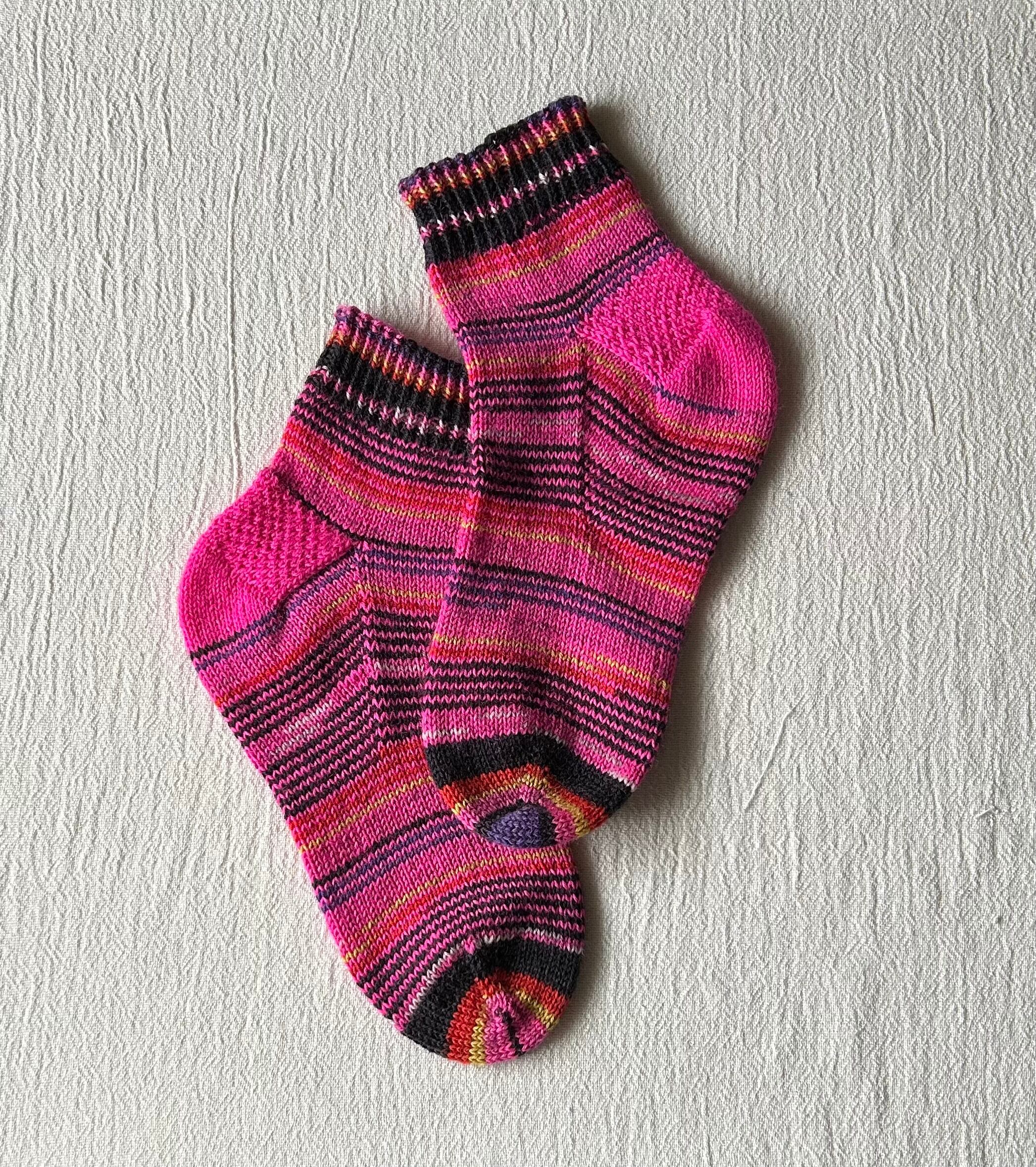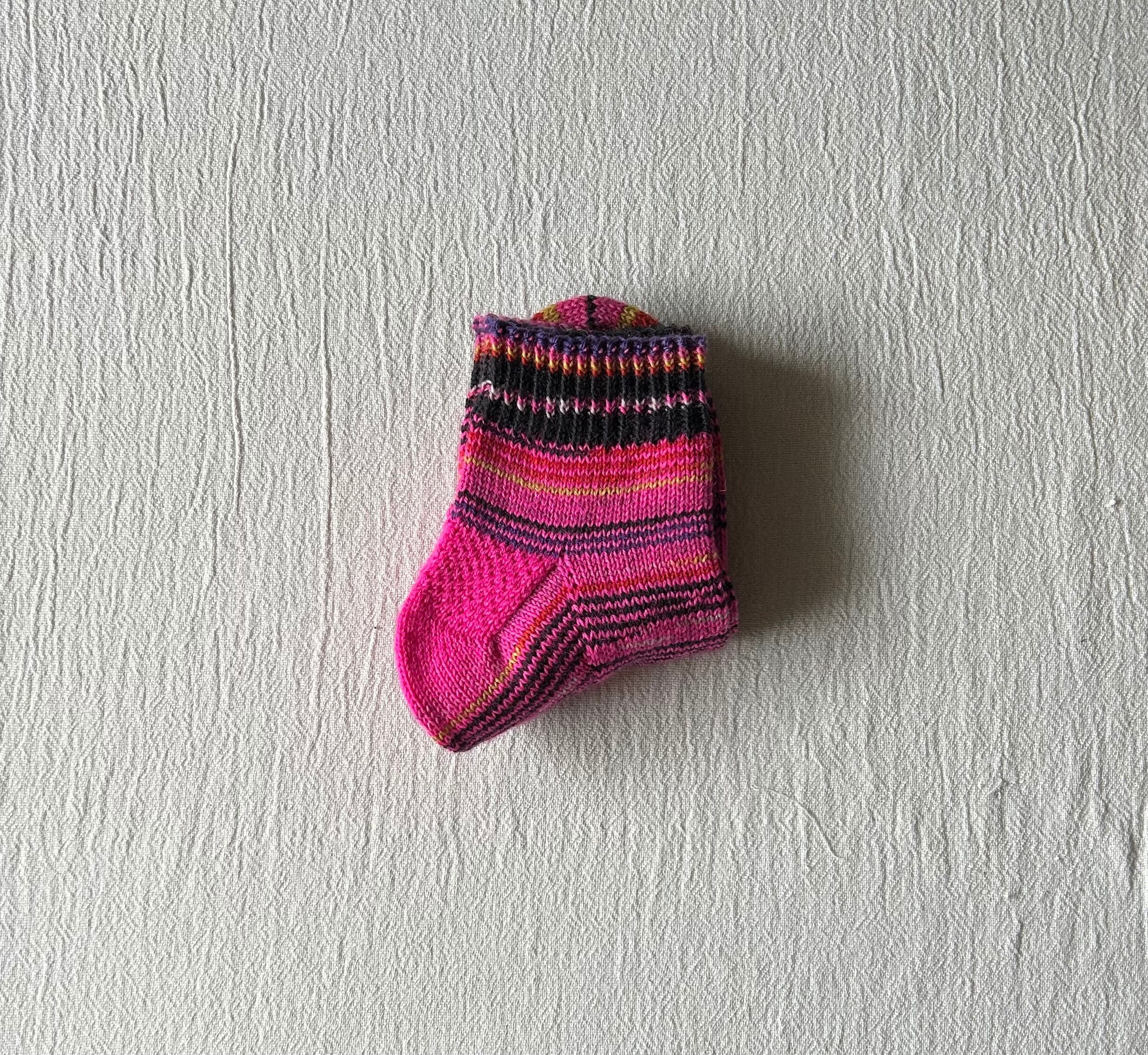 この靴下は、ハッピースクラッピーソックスと言って、『残り糸もハッピーに可愛い靴下に』という思いのこもった、世界に一つだけの靴下です。