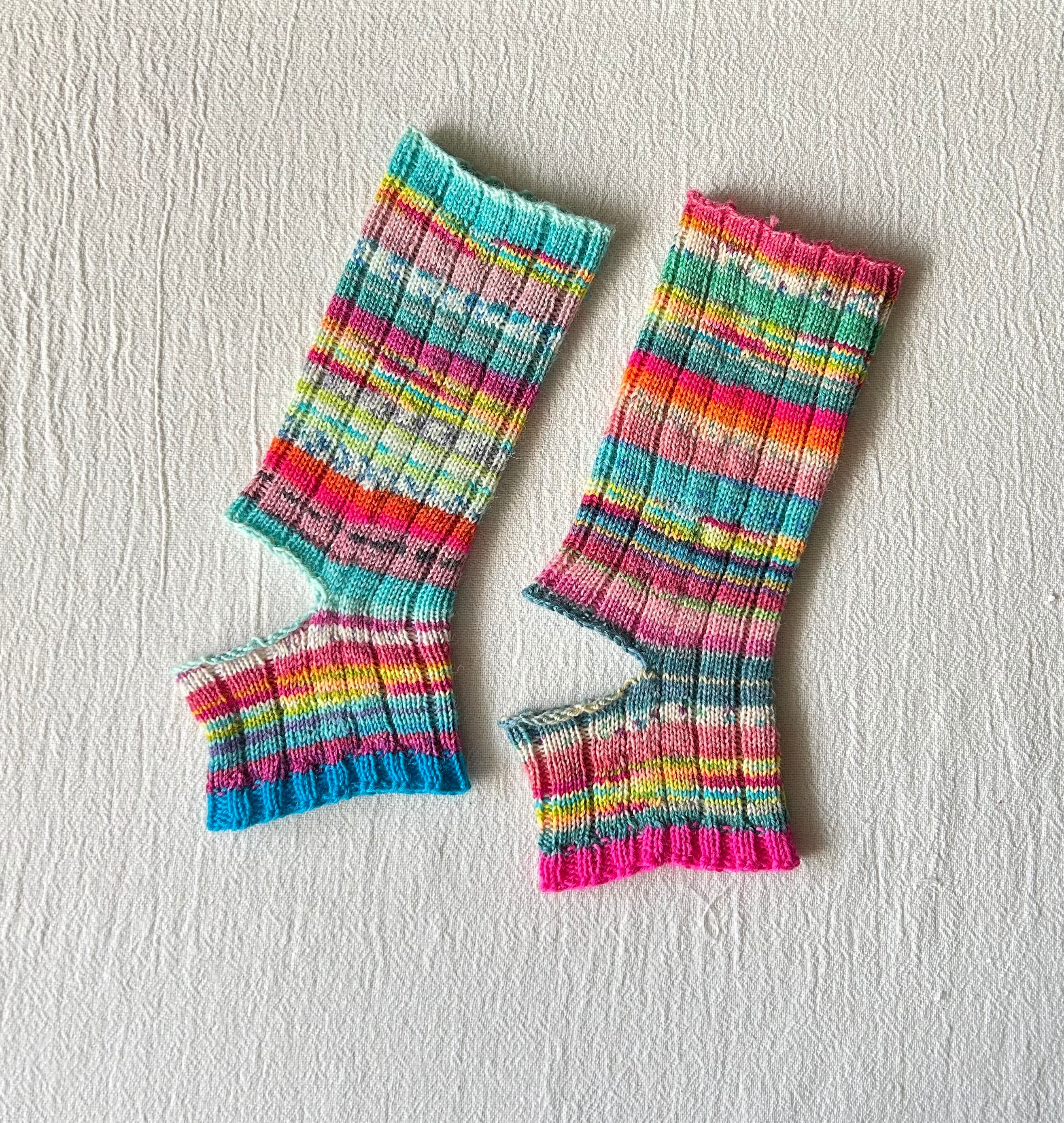 この靴下は、ハッピースクラッピーソックスと言って、『残り糸もハッピーに可愛い靴下に』という思いのこもった、世界に一つだけの靴下です。