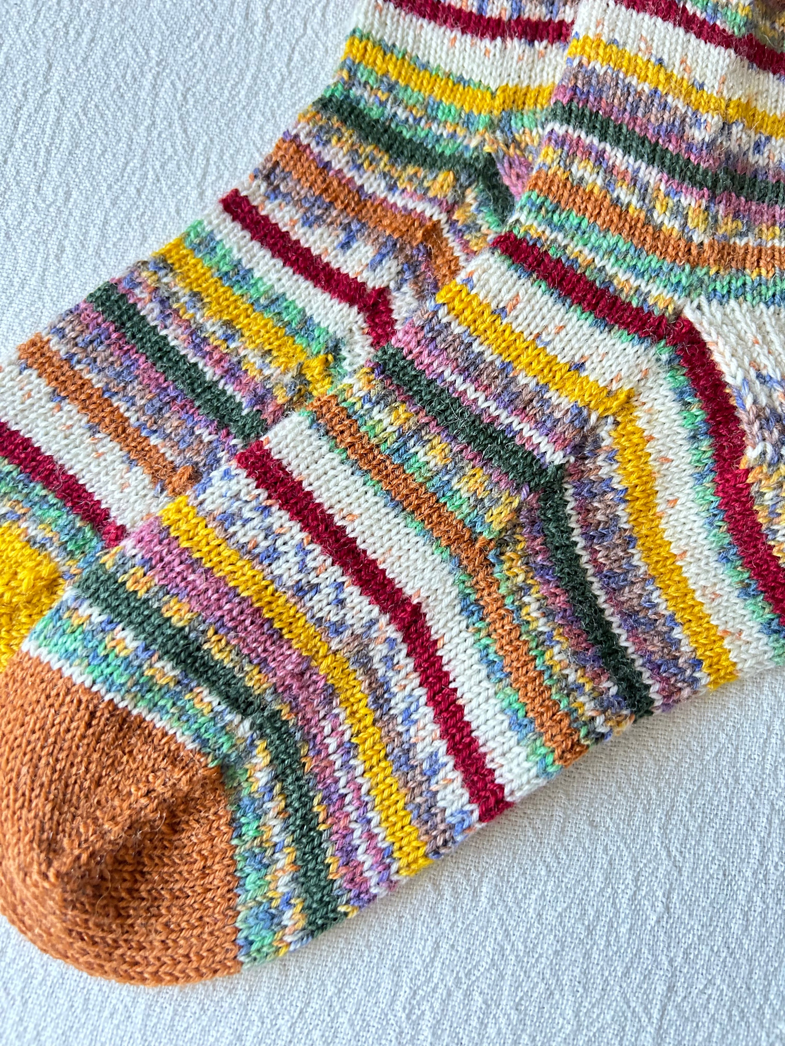 この靴下は、ハッピースクラッピーソックスと言って、『残り糸もハッピーに可愛い靴下に』という思いのこもった、世界に一つだけの靴下です。