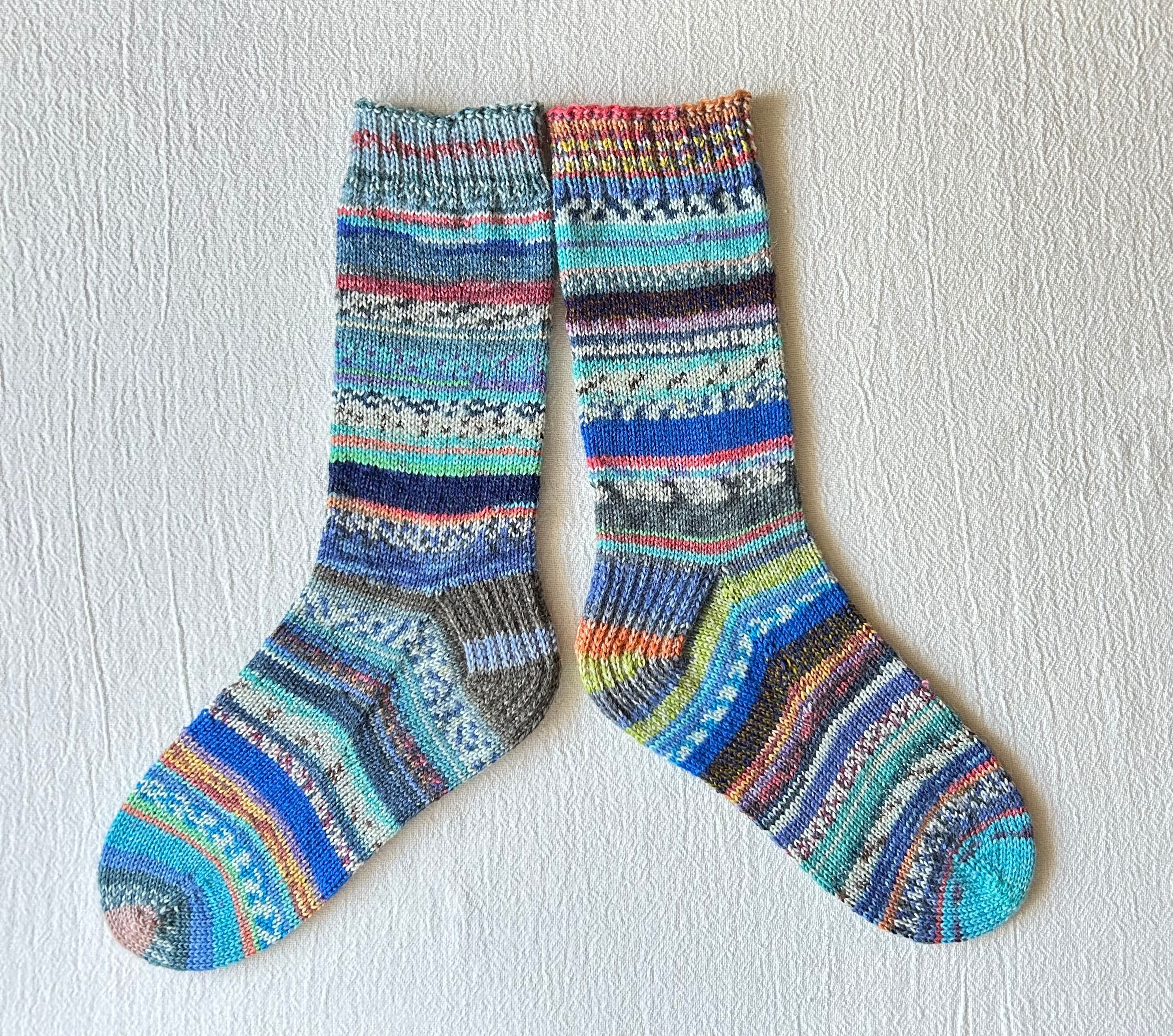 この靴下は、ハッピースクラッピーソックスと言って、『残り糸もハッピーに可愛い靴下に』という思いのこもった、世界に一つだけの靴下です。