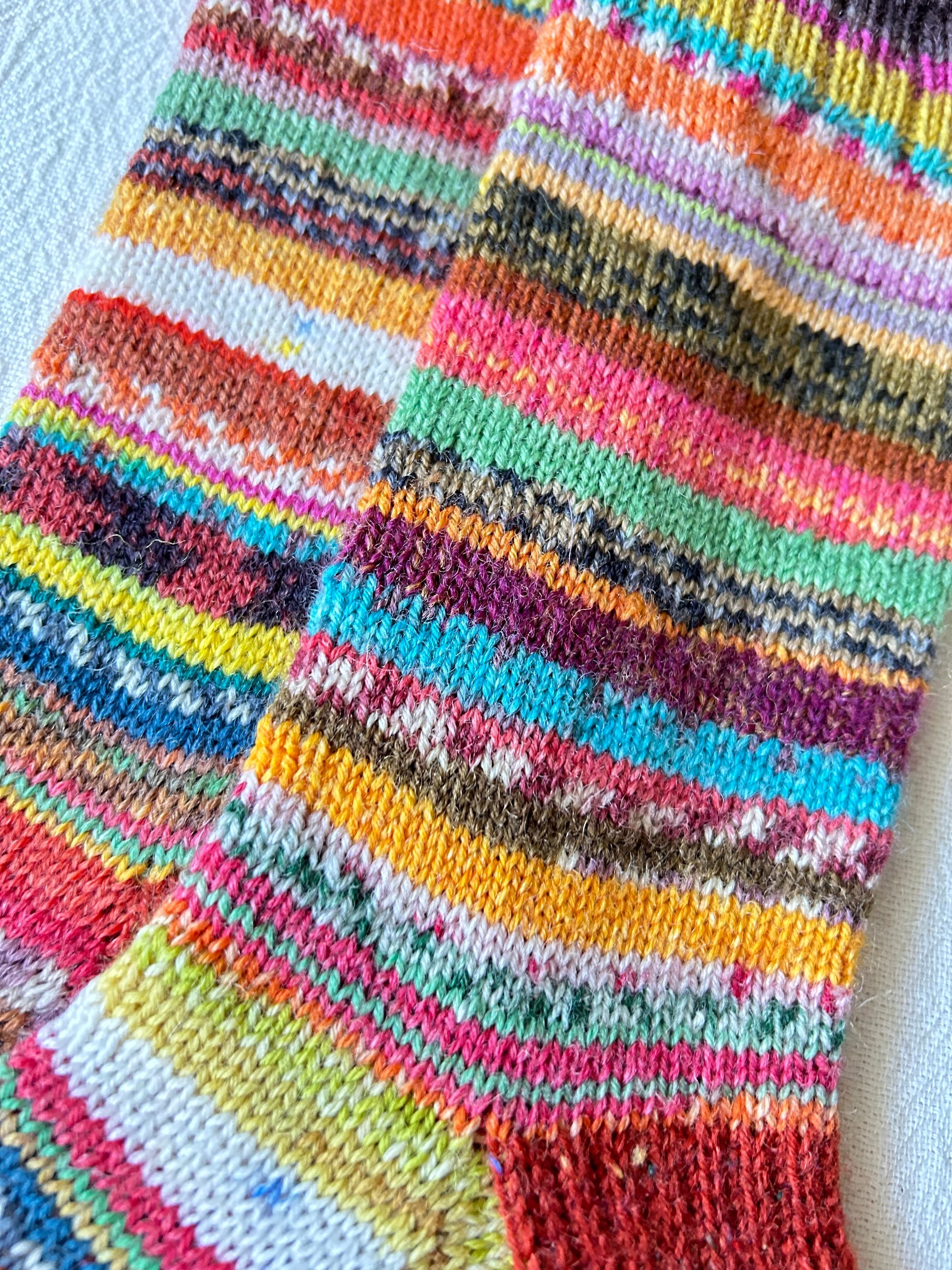 この靴下は、ハッピースクラッピーソックスと言って、『残り糸もハッピーに可愛い靴下に』という思いのこもった、世界に一つだけの靴下です。