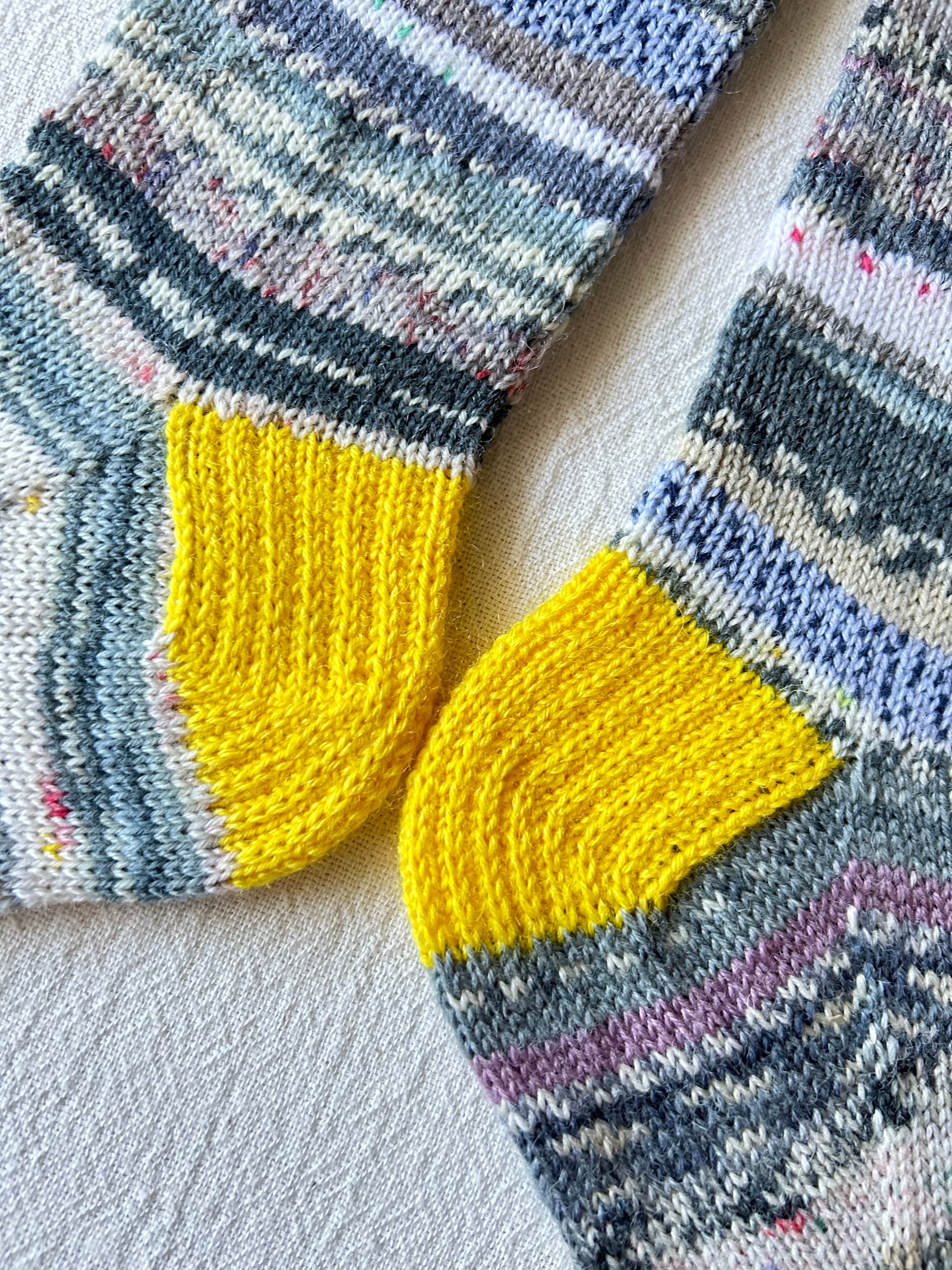 手編みのカラフルな靴下です。