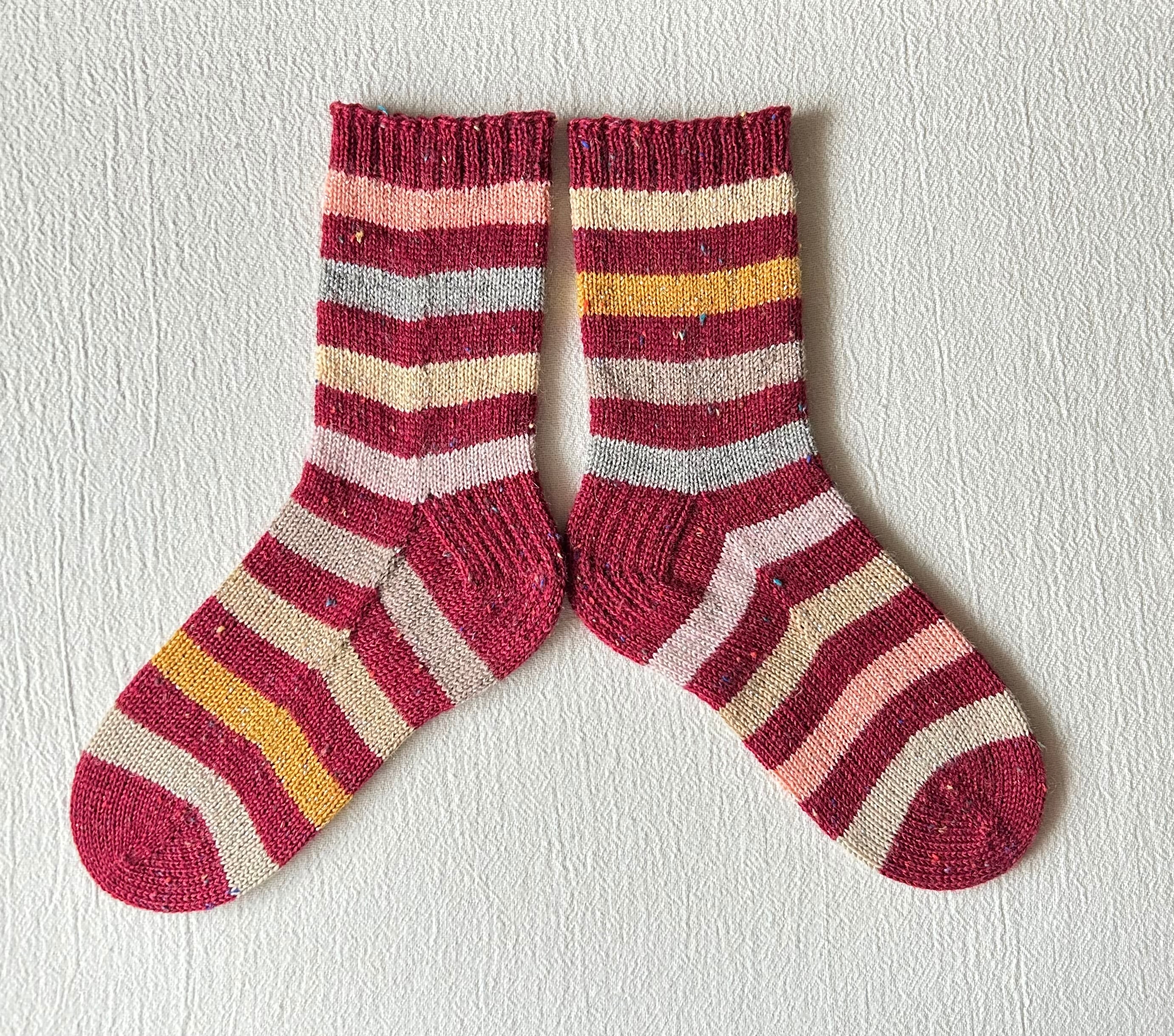 手編みのカラフルな靴下です。